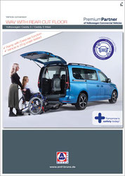 The new Volkswagen Caddy (5th generation) is a wheelchair accessible vehicle for passive drivers. The rear cutout with access ramp allows the wheelchair user to be transported comfortably. The non-slip ramp with EasyUse function can be operated with one hand and allows easy access to the vehicle. Due to the lowered floor pan there is plenty of space in the passenger compartment. Protektor occupant & wheelchair restraint systems are provided to secure both the wheelchair occupant as well as the wheelchair. Extra protection is provided by the head & backrest FutureSafe.