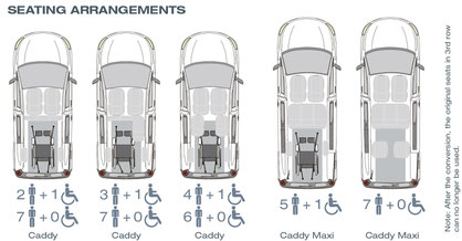 NOTE: After the conversion, the factory solution as a 7-seater is no longer possible; The Caddy Maxi with hybrid drive can now also be converted into a wheelchair-accessible vehicle for passive drivers!